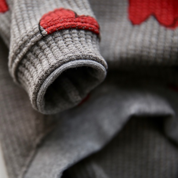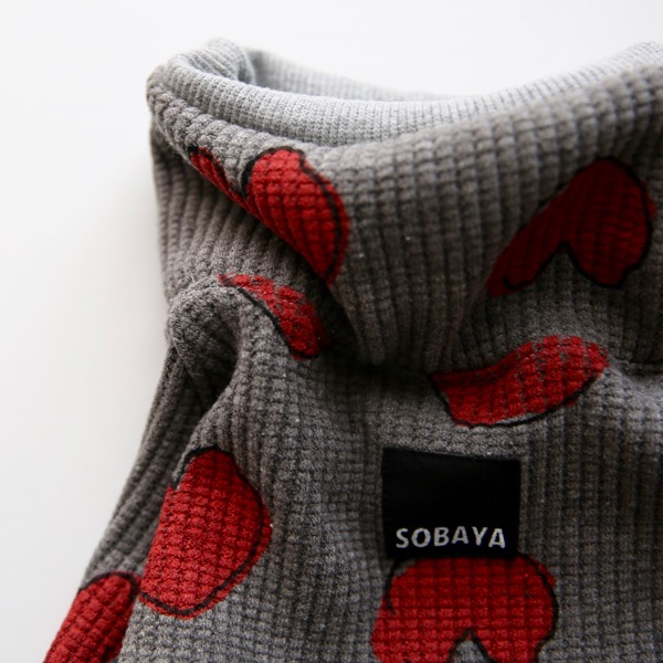 首リブが伸びて着崩れる事を防いだり、洋服が脱げるのを防止し、長く心地よく着て頂く為、ゴム紐を入れてあります。