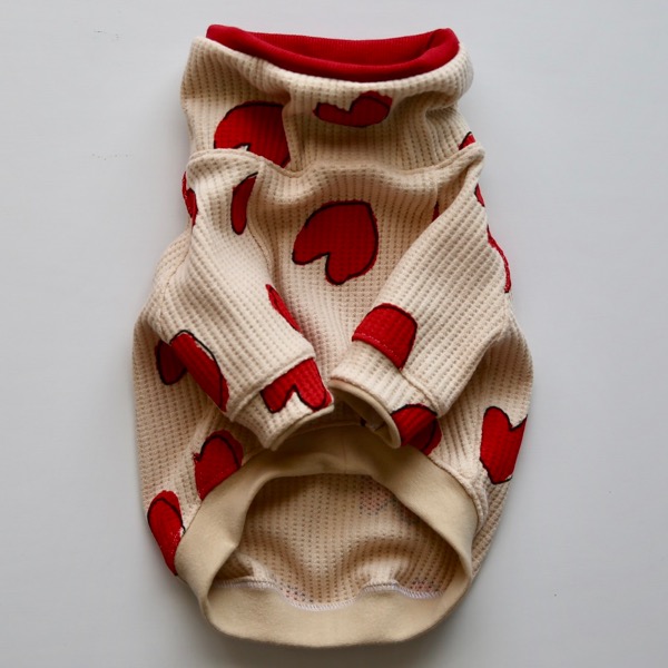 首が立派な子は、爪楊枝や針などで引っ掛けてゴム紐を外していただくとゆったり着ていただけます。